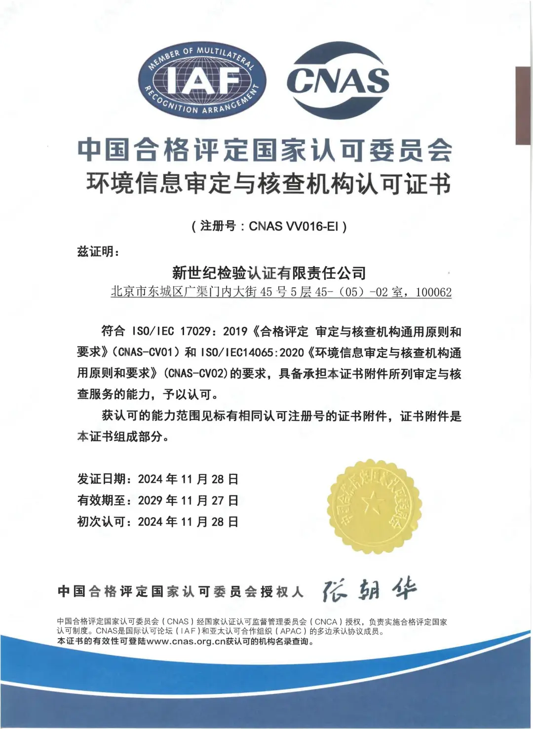 新世紀(jì)檢驗(yàn)認(rèn)證有限責(zé)任公司