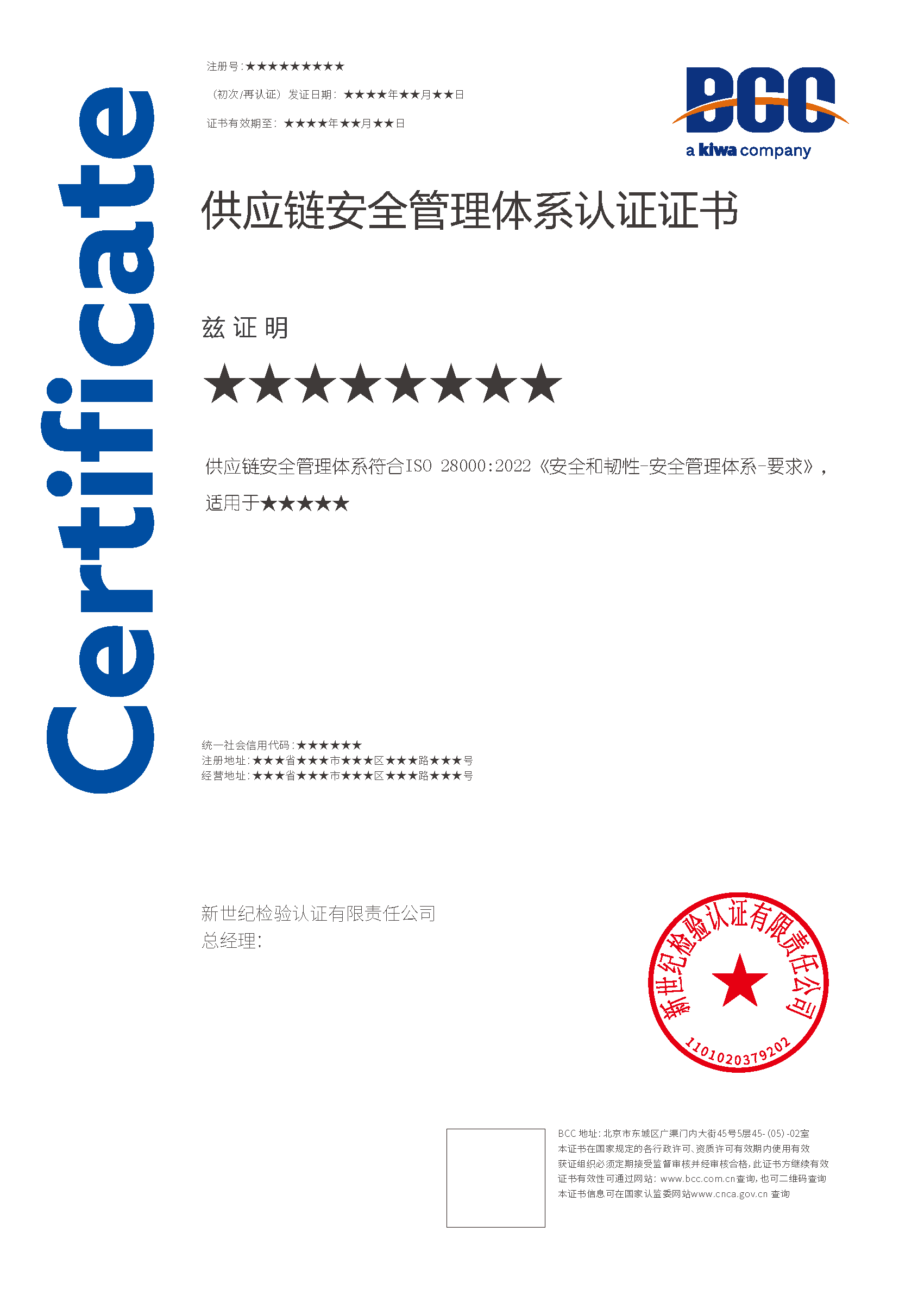本頁(yè)涉及的認(rèn)證服務(wù)中均有對(duì)應(yīng)的《認(rèn)證實(shí)施規(guī)則》,BCC擁有其最終解釋權(quán)。任何組織及個(gè)人未經(jīng)BCC許可,不得以任何形式全部或部分使用(法律要求除外)認(rèn)證相關(guān)信息。如需獲取相關(guān)實(shí)施規(guī)則請(qǐng)用以下方式聯(lián)系獲取:電話:010-58579316 郵箱:fwjs@kiwa.cn