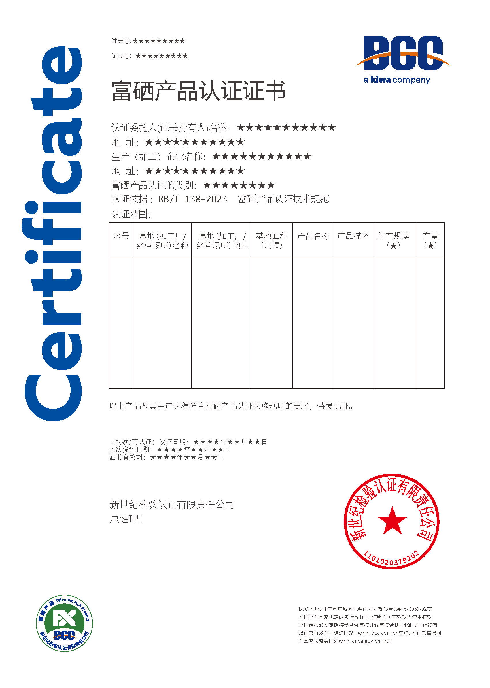 富硒產(chǎn)品認證證書有效期最長為12個月。獲證組織應(yīng)至少在認證證書有效期結(jié)束前3個月向BCC提出再認證申請。