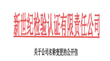 根據(jù)公司戰(zhàn)略發(fā)展的需要,經(jīng)市場監(jiān)督管理局核準,自2019年10月22日起,公司名稱由“新世紀檢驗認證股份有限公司”正式變更為“新世紀檢驗認證有限責(zé)任公司”。閱讀更多 -