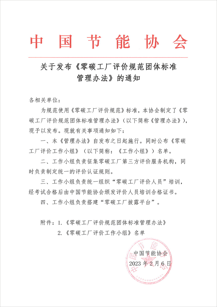 關(guān)于發(fā)布《零碳工廠評(píng)價(jià)規(guī)范團(tuán)體標(biāo)準(zhǔn)管理辦法》的通知
