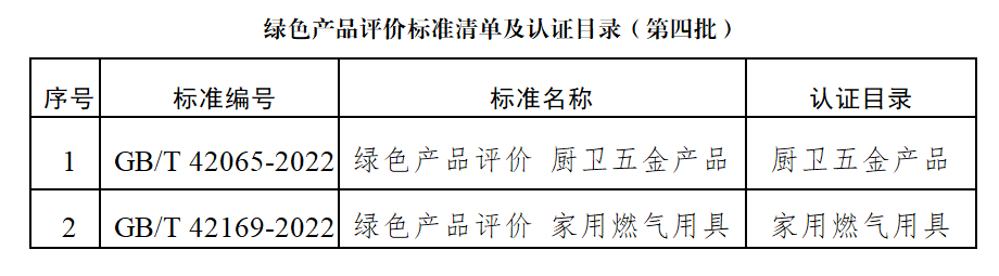關(guān)于發(fā)布綠色產(chǎn)品評價標(biāo)準(zhǔn)清單及認(rèn)證目錄(第四批)的公告