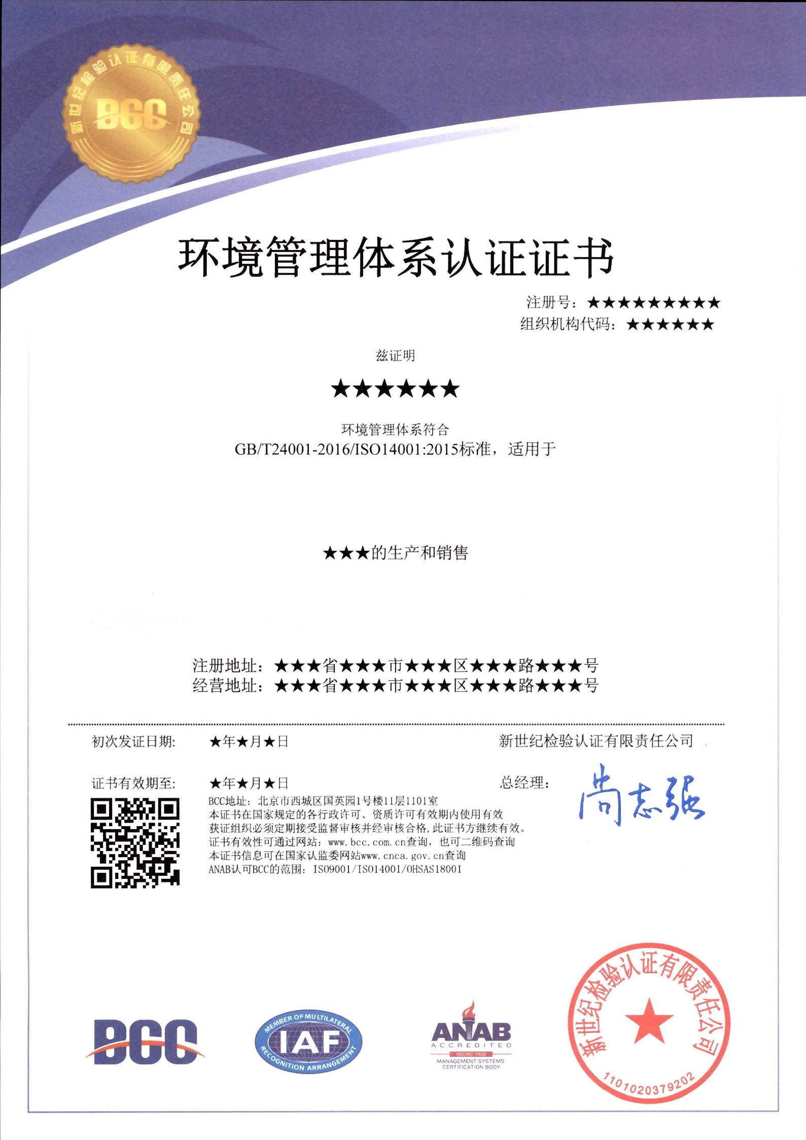 你好,環(huán)境管理體系認(rèn)證書樣本每個(gè)認(rèn)證機(jī)構(gòu)都是不一樣的。但是證書上一定有認(rèn)證的標(biāo)準(zhǔn)、標(biāo)志、產(chǎn)品范圍等信息。