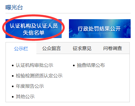 機構(gòu)曝光情況也參見國家認證認可委員會網(wǎng)站,如下圖: